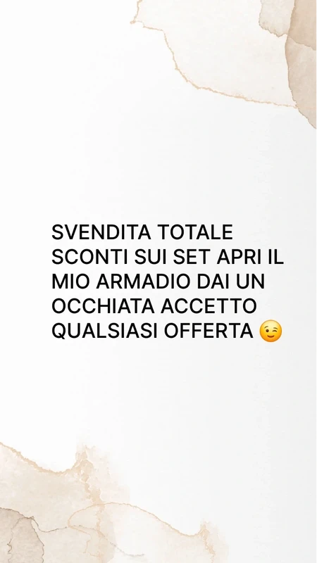 Salve vendo vestiti e scarpe in ottime condizioni o altro sempre quasi sempre nuovo o tenute in buone condizioni sono disposta a trattare e anche a comprare😉prezzi tutti trattabili crea il tuo set oppure singolarmente 😉 TUTTA ROBA OTTIMA😉😉😉😉😉FATE OFFERTE PREZZI TRATTABILI ..VOI FATE IL PREZZO IO ACCETTO 🤗 APRITE IL MIO ARMADIO FUORI TUTTO!!!! P.S il mio difetto....avere il fisico a fisarmonica quindi molta roba non riesco a indossarla😒😉😪